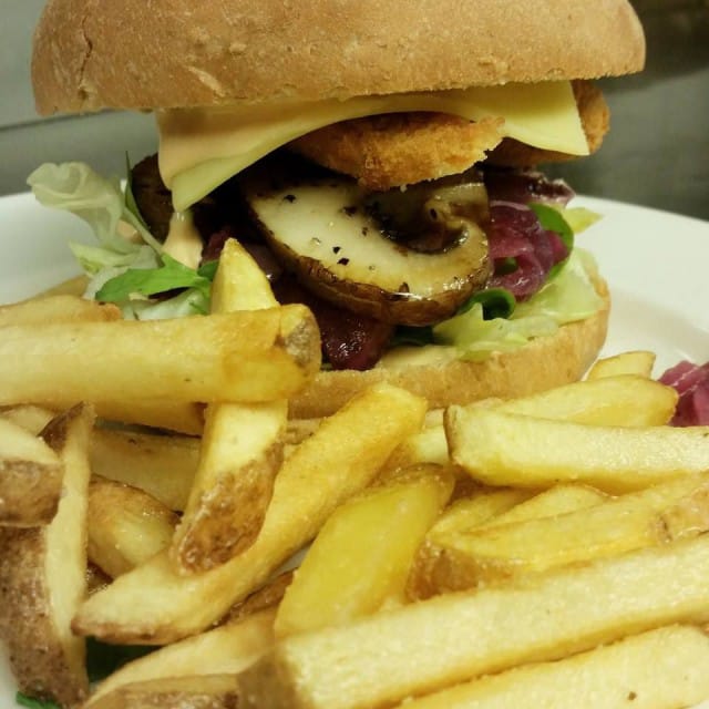 Burgerit tarjoillaan ranskalaisilla perunoilla. Saatavissa erityisruokavaliot huomioiden.