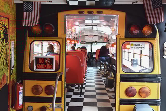 Lahden laitamilla, noin kymmenen kilometrin matkan päästä keskustasta, sijaitsee erittäin kiinnostava mesta. Bus Burger on vanhan huoltoaseman pihaan rakennettu diner-kokonaisuus, joka saa upean ulkomuotonsa jenkkityylisistä koulubusseista, joita pihaan on parkkeerattu. Yksi busseista näyttää siltä, kuin se olisi peruutettu seinästä läpi. Sisältä selviää, että kyse on saumattomasta liitoksesta, joka yhdistää vanhan huoltsikkarakennuksen bussin perään.