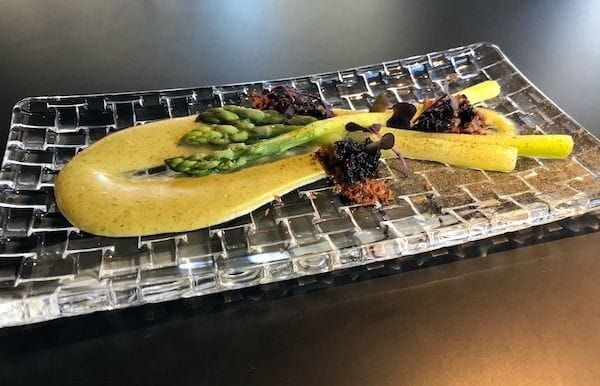Avecini valitsevat alkuruoaksi parsaa ja nokkosta sekä siikaa ja piimää. Hentojen parsojen makuja hauskan kirpeä nokkoskastike korostaa mukavasti. Siika-annos oli aika pieni ja koska maut olivat erittäin kohdallaan, olisi avecini syönyt sitä mieluusti enemmänkin. Piimän ja kalan ohessa oli rapeaa tekstuuria tuovaa leipää.
