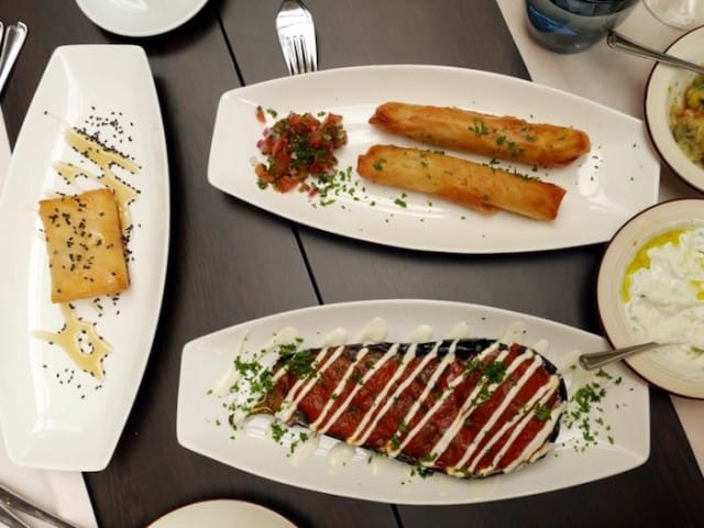 Kaunis ja valoisa ravintolatila on moderni lasiseinien ja vaaleiden pintojen ansiosta. Tilaan on tuotu myös kreikkalaista tunnelmaa esimerkiksi ravintoloitsijan vaimon valitsemien verhojen avulla. Ravintolassa on todellista perheyrityksen tuntua. Koko henkilökunta on iloinen ja rupattelee mielellään, ja ravintoloitsija ja hänen poikansa ovat todellisia seuramiehiä. Illallisen aikana pääsemme kurkistamaan annosten taa niin kreikkalaiseen kulttuurin, kuin heidän oman perheensä tarinan ja ruokamuistojen kautta. Pääsimme myös tutustumaan uuteen, syyskuun alkupuolella julkaistavaan ruokalistaan. Annokset olivat välimerelliselle ruoalle tyypillisesti vahvasti kasvispainotteista. Oliiviöljyä, yrttejä ja tomaattia käytetään runsaasti.