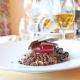 Eräs Juuren erikoisuuksista on sapakset, siis suomalaiset tapakset. Niitä saamme alkuruoaksi jaettavaksemme kolme (silliä, keltajuurta ja omenaa, perunaa ja tyrniä sekä kanaa ja juuripersiljaa). Ne kaikki ovat mauiltaan loistavia ja toteamme avecini kanssa yhteisesti sillisapaksen nousseen suosikiksemme. Se on sopivan suolaista ja samalla makeaa ja sopii hyvin vapun läheisyyteen. On hyvä antaa ravintolalle vapaat kädet ruokien valinnassa, sillä kumpikaan meistä ei olisi todennäköisesti tullut itse sillisapasta valinneeksi. Myös perunasapas, jossa on Hasselbackan perunaa, perunamuusia ja juustoista perunapyrettä ansaitsee kehut. Se on ihanan pehmeää ja aika ruokaisaa; lohturuokaa parhaimmillaan!