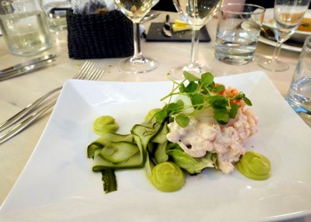 Mutta mennäänpä itse asiaan ja listan ruokiin. House of Sandwich Brasserien lista on napakka ja sen valikoima on linjassa paikan olemuksen kanssa; leipiä on siis tarjolla useampaa sorttia. Alkuruoaksi tilaamme konjakilla höystettyä jokirapukeittoa sekä toast skagenin, jota löytyy hieman muutettuna myös catering-myynnistä. Molemmat annokset ovat todella maukkaita ja isoja. Skagenin avokadovaahto on ihanan raikas ja sitruksinen.
