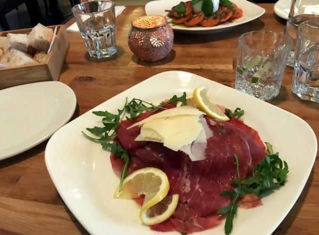 Annokset Pjazzassa ovat isoja ja niiden välillä valitseminen on vaikeaa. Kaikki ruoat ovat erittäin maistuvia ja raaka-aineet tuoreita. Alkuruoaksi valitsemme carpaccion rucolalla ja parmesaanilla sekä puhvelimozzarellaa, tomaattia ja basilikaa. Lihasta eikä juustosta säästellä ja alkuruoissakin on jo reilusti syötävää. Tässä ravintolassa on hinta-laatusuhde kohdillaan!