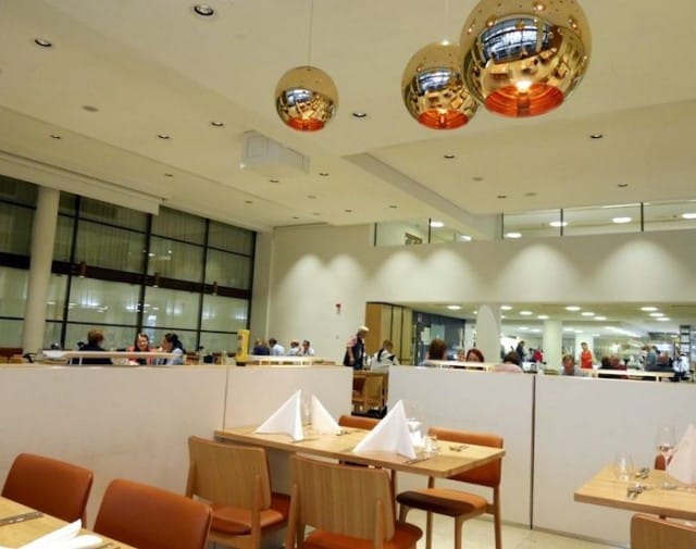 Ja hyvä, että on avautunutkin. Vaikka tila on suuri ja suunniteltu ennen kaikkea toimivaksi kiireisille lounastajille, on se karistanut ympäriltään liiallisen lounasruokalamaisuuden hauskalla näkymällä sisäpihalle ja kauniilla yksityiskohdilla. Arabiallakin työskennelleen Mikael Schilkinin näyttävä Kauppatori-reliefi koristi jo aikanaan kaupungintalon vanhalla puolella henkilöstöruokalan seinää, kunnes se varastoitiin vuosikymmeniksi. Nyt uudistuksen myötä teos on saapunut takaisin keräämään niin vierailijoiden kuin kaupungintalon henkilökunnankin katseita. Myös kauniit lamput sopivat tilaan mainiosti. Merkittävän lisän tunnelmaan tuo ravintolan mukava ja hymyilevä henkilökunta, joka toivottaa lämpimästi tervetulleeksi ja saa viihtymään.