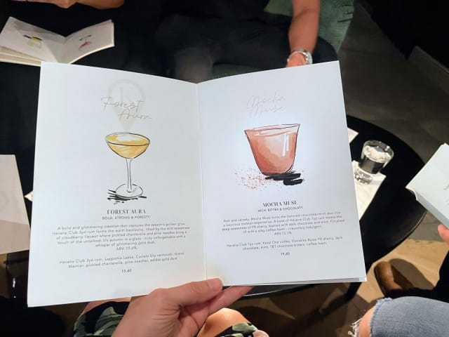 Kupolin cocktail-lista elää sesonkien mukaan, ja pohjoisen luonnon maut näkyvät rohkeasti juomissa. Pääsimme testaamaan vastikään lanseeratun, vuodenaikaan vahvasti nojaavan syysmenun tarjontaa.
