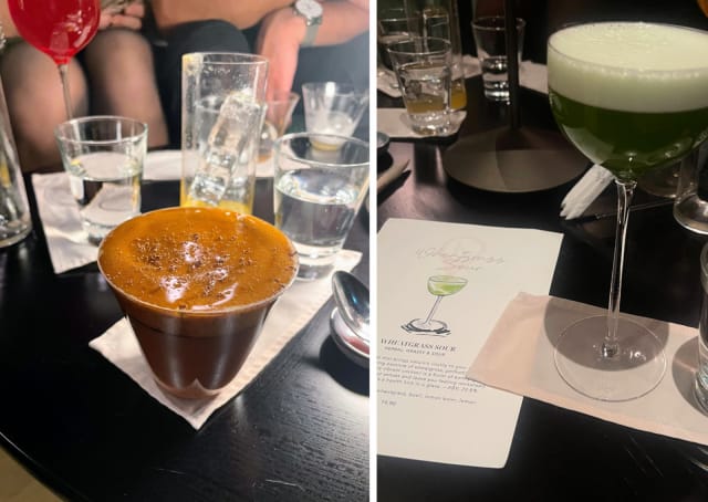 Ja koska baarin syntymäpäivät ovat paraikaa käynnissä, syysmenun lisäksi nautitaan myös asiakkaiden suosikkeja vuoden varrelta. Tällä kertaa menua täydentämään oli nostettu kevään listan helmi, muun muassa vehnäorasta ja basilikaa sisältävä Wheatgrass Sour, joka hurmasi myös meidät sekä upealla värillään että raikkaalla maullaan.