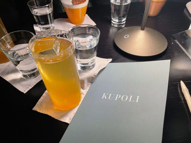 Koska juomat on hiottu huippuunsa, niitä ei todellakaan vain tyrkätä prikalla eteen, vaan tässä paikassa henkilökohtainen palvelu jatkuu pöytiin. Menu käydään huolella läpi, ja jokainen juoma esitellään yksityiskohtaisesti. Kupolissa ei siis jää epäselväksi, että juomien jokainen raaka-aine, jääpala ja tarjoilulasi on tarkkaan mietitty.