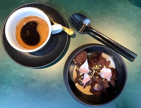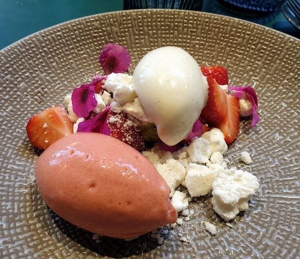 Mitä jälkiruokaan tulee, mielestäni poksukarkit on parasta mitä jälkiruokaan voi piilottaa ja tuskin kukaan on koskaan syönyt huonoja mokkapaloja. Siksi Mokka6palaa oli ehdoton valinta suklaaleivoksine ja paukkuströsseleine. Myös, tuhtia suklaata raikkaampi ja kevyempi valinta, Coupe Romanov oli oikein mainio lopetus illalliselle.