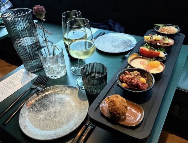 Alkuun valitsemme pieniä suomalaistapashenkisiä alkupaloja Kuusi palaa. Tai Puoli kuusi (3) molemmille, miten asian haluaakaan ajatella. Valinta on vaikea, sillä kaikki alkuruokapalat vaikuttavat mielenkiintoisilta. Päädymme lopuilta valintoihimme ja sovimme maistelevamme annoksia ristiin, joka osoittautuu toimivaksi ja aika ruokaisaksi ratkaisuksi.