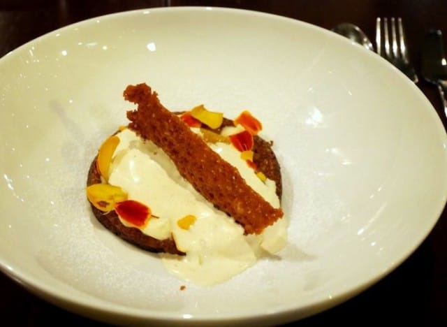 Ruokalista vaihtuu ravintolassa usein, nyt keväällä jopa muutaman viikon välein, ja viiden ruokalajin menu vaihtuu saatavilla olevien ainesten mukaan päivittäin. Viiden ruokalajin menun hinta, 59 €, on pyritty pitämään hyvinkin kohtuullisena ja ”hyvän hintaiset menut” ovatkin muodostumassa ravintolan tavaramerkiksi, onpa ne huomioitu White Guide Nordicissa asti. Menun vaihtoehdoksi voi napakalta à la carte -listalta poimia itselleen sopivan annoskokonaisuuden ja kuten ranskalaiseen tapaan kuuluukin, on ravintolassa panostettu myös juustoihin. Juustot tulevat Hakaniemen Lentävästä Lehmästä, jossa ne valitaan aina ajatuksella tarjolla oleville viineille sopiviksi, kertoo Mari Kärkkäinen.