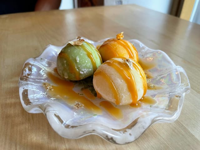 Pienen makean päätöksen upeita ja yllättäviä makuelämyksiä sisältävälle aterialle toivat pienet mocha-jäätelöt, joista etenkin ananas toimi erinomaisesti raikkaana lopetuksena.