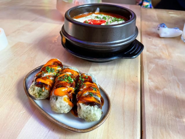 Jos haluat maistaa jotain, mitä ei ihan joka ravintolasta löydä, valitse listalta Cheesy Tteokbokki & Kimmari -annos. Ai siis mikä?