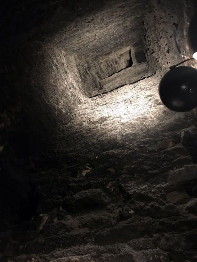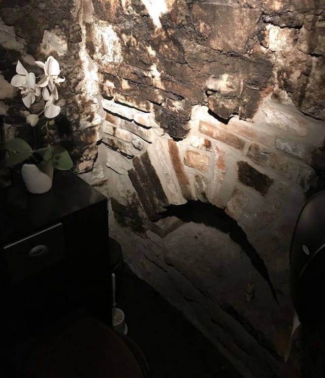 Ravintolan ylemmän kerroksen wc-tilat on rakennettu vanhaan savupiippuun siten, että huoneen katto jatkuu hormina korkealle ylös ja savupiipun sisällä tuoksuu vielä vahvasti noki. Miten mahtava yksityiskohta! Se kannattaa ehdottomasti käydä katsomassa, kun Kaerajaaniin saapuu ruokailemaan.