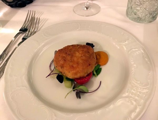 Avecini ehdoton suosikki oli alkuruokana nauttimamme perinteinen rapukakku, joka tarjottiin pienen okrasalaatin ja raikkaan sitruunahyytelön kera. Kakku oli huolellisesti valmistettu, maut olivat kohdallaan ja ennen kaikkea itse päätuote tarjottiin mukavan kuumana. Rapukakun seuraksi kaadettiin kalifornialaista Robert Mondavin Pinot Noiria. Tämä makupari oli erittäin onnistunut, kuten kaikki muutkin juomasuositukset läpi aterian.
