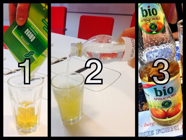 Ei hätää! Kaada mehun päälle kuplavettä ja maista. Yhtäkkiä voit huomata juovasi [url=http://en.wikipedia.org/wiki/Apfelschorle]Apfelschorlea[/url] keskellä kesäistä Berliiniä. Jos Perliini ei napostele, käy juoma kotoisemmasta pommakistakin.