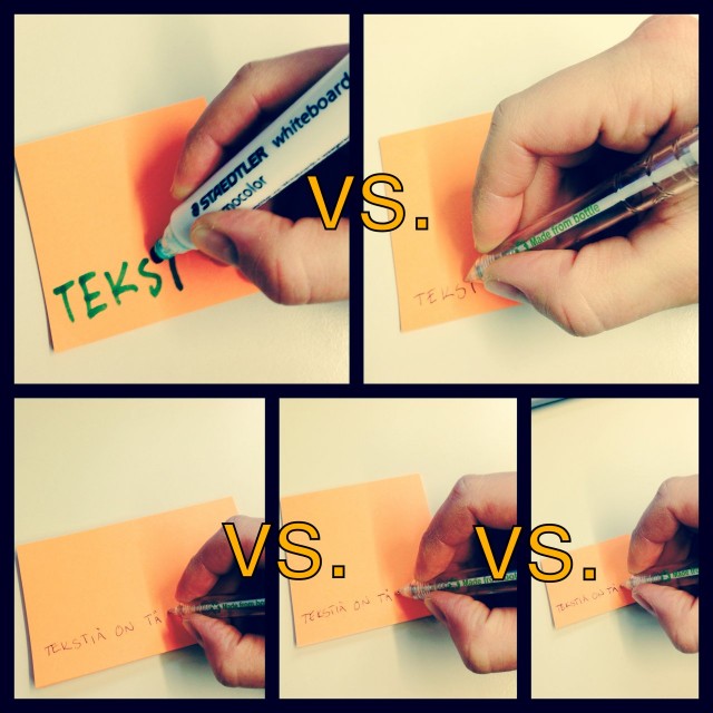 Mitä isommalla kynällä kirjoitat, sitä enemmän enemmän paperia kuluu. Tussilla kirjoittaessa muste menee usein paperin läpi, joten toista puolta ei voi välttämättä enää käyttää. Lisäksi kirjoittamasi teksti kopioituu helposti alla oleviin papereihin.