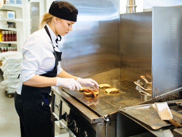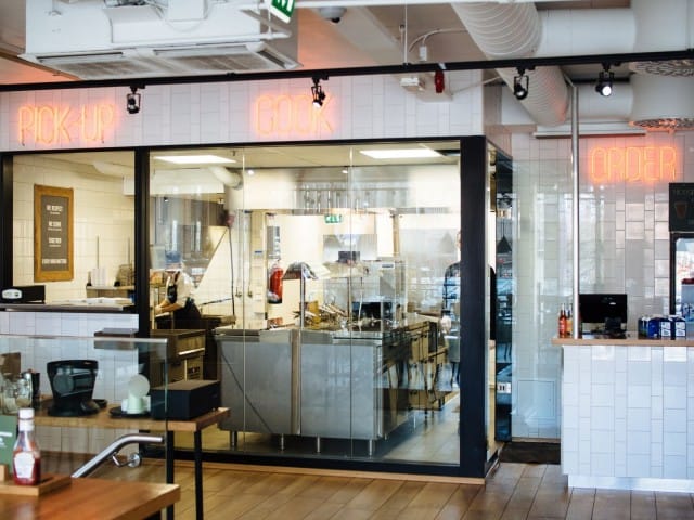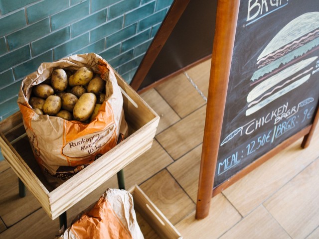 Tuoreus tulee ensimmäisenä esiin. Tuoreus on tuotu kaikkien nähtäväksi. Lasin takaa voit katsella, kuinka kokit valmistavat ruoka-annoksia. Avokeittiössä ja tuoreudessa sinänsä ei ole mitään ihmeellistä, joten on pureuduttava syvemmälle. Tuoreus tarkoittaa heille parhaita raaka-aineita, jotka ovat 98% suomalaisia ja mahdollisimman paljon lähituotettua. Sämpylät leivotaan itse paikan päällä joka päivä. Suomalainen liha jauhetaan itse paikan päällä. Kastikkeet valmistetaan itse paikan päällä. Ranskalaiset – sama juttu. Esillä olevista perunapusseista voit tarkistaa perunan alkuperän. Suomalaista on. Ja kaikki on suurimmaksi osaksi lisäaineetonta. Pakko sanoa, että olen vakuuttunut, etenkin kun miettii annosten edullista hintaa.