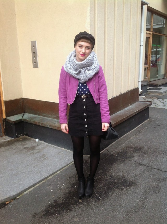 Tyylini on tyttömäinen ja värikäs. Syksyllä pukeutumiseeen vaikuttaa myös se, että pitää pysyä lämpimänä. Shoppailen yleensä H&M:llä ja kirppiksillä.