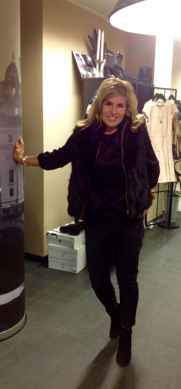 Käytän aina korkokenkiä. Haluan pukeutua persoonallisesti sekä omalla tyylilläni rennosti. En kestä massavaatteita ja shoppaan pääsääntöisesti vain ulkomailla. Tämän päivän asuni on kokonaan italialaisen Twin-setin. Kengät ovat Il Vermestä.