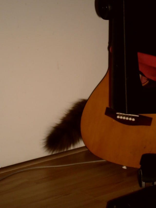 Etenkin tässä kitaran vieressä tuo ragdoll on oikein ylväs.
