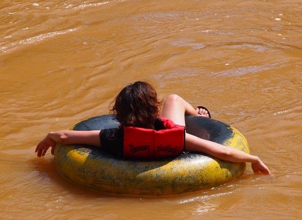 Kaikki sai alkunsa vuonna 1998. Matkailuyrittäjä Thanongsi Sorangkoun osti sisärenkaita vapaaehtoisille työntekijöilleen. Hän ajatteli tämän olevan ekologinen tapa ihailla kauniita maisemia ja monimuotoista ekosysteemia. Vahinko loi hirviön. Pian muut valjastivat konseptin kaupallisiin tarkoituksiin ja voilá: Tubing in Vang Vieng sai syntynsä.
