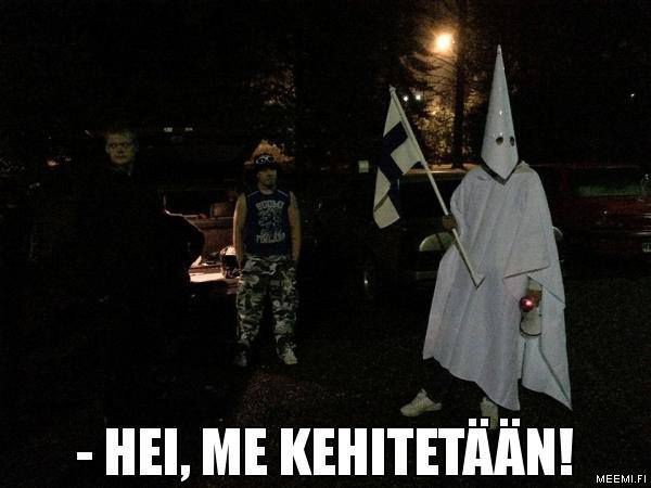 Lahden Hennalan vastaanottokeskukseen tuotiin perjantain vastaisena yönä ensimmäiset turvapaikanhakijat. Joukossa oli sylilapsia, naisia ja vanhuksia. Vastassa oli juntteja, ilotulitteita ja [url=http://yle.fi/uutiset/turvapaikanhakijoiden_bussia_heitettiin_ilotulitteilla_sprn_tyontekijaa_kivilla/8331041]Ku-Klux-Klan -cosplay[/url]. Tervetuloa lama-Suomeen.