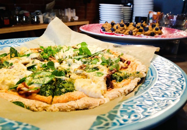 Kahvilan perustaja Pasi Kokko kertoi paikan filosofiasta ja tarjoili niin törkeän hyvää raakapizzaa, että järki lähti. Tähän on pakko pyytää resepti, toivottavasti se ei ole salainen…