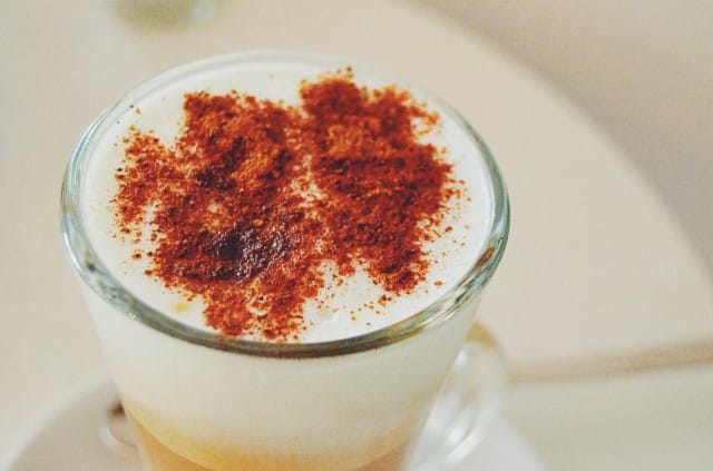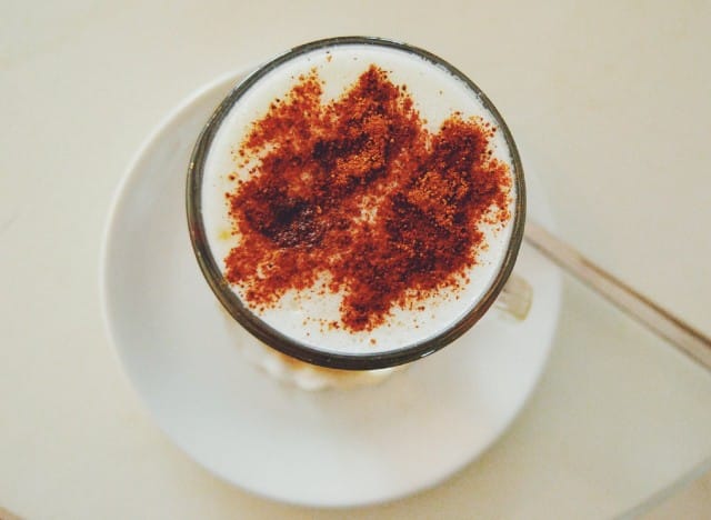 Luomuespressoa, erikoiskahveja. Paikan omistaja ylipuhui mut nauttimaan [i]Cafe Mielin[/i] soijamaidon, kanelin ja hunajan kera. Olin taas ylipuhuttavissa. Herkullisen näköinen ja makuinen, vaikka oonkin vahvan kahvin ystävä ilman sen kummempia erikoisuuksia.