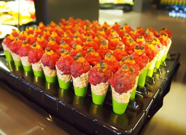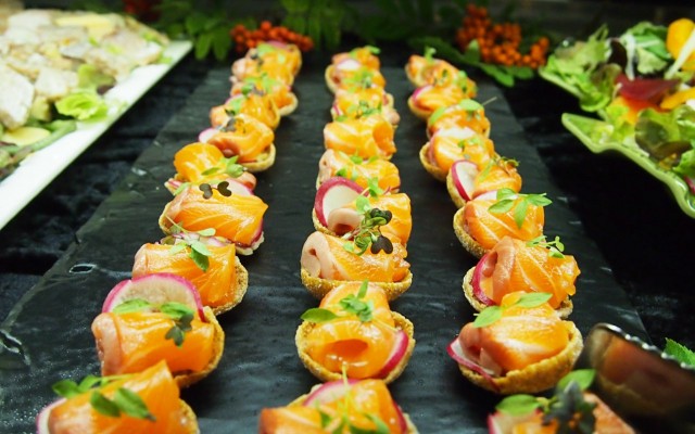 Tarjoilut olivat kunnossa, halleluja. Erilaisia salaatteja, lämpimät ruoat joista kaikki gluteenittomia, plussaa! Viini virtasi ja Lola ([i]the one and only[/i]) ohjasi vieraita hotellihuoneisiin tutustumaan. Meitä kiinnosti Juulian kanssa enemmän ruoka.
