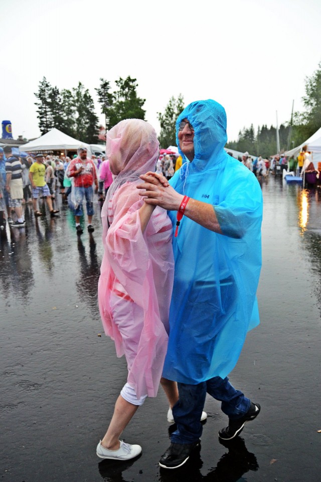 Suomalainen sisu sai yleisön sankoin joukoin lavan eteen, sadeasut päälle ja kansa nautti keikasta täysin rinnoin. Nähtiin lavan edessä perinteistä, iskelmäfestareille kuuluvaa tanssikarkelointiakin.
