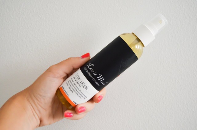 Timjamilakka* on ponnekaasuton hiuslakka joka antaa kevyen pidon ja se on mulla käytössä ihan päivittäin. Hiukset eivät näytä "lakatuilta" vaan täysin luonnollisilta ja ne eivät tunnu lainkaan tahmeilta. Myöskään siihen timjamin "tuoksuun" en ole ensikokeilun jälkeen edes reagoinut.