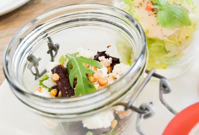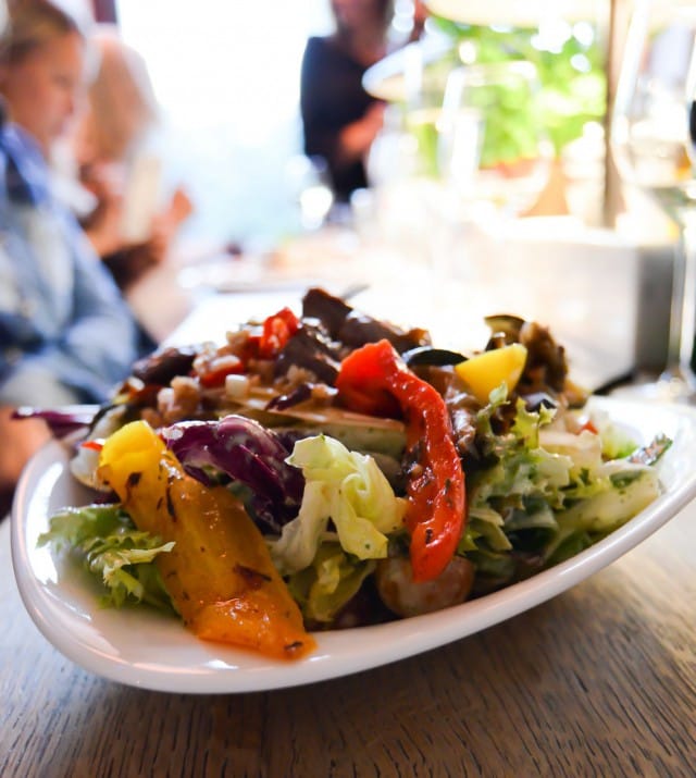 [b]Reef’N’Beef -salaatti.[/b] Aikamoinen sekamelska, mutta tässä jos jossain oli jytyä. Salaateista jää usein nälkäiseksi, ei tästä tuttavuudesta. Mureaa naudanfilettä, jättikatkaravunpyrstöjä, grillattuja kasviksia. Perinteisestä salaatista kaukana ja se tässä ehkä sykähdyttikin.