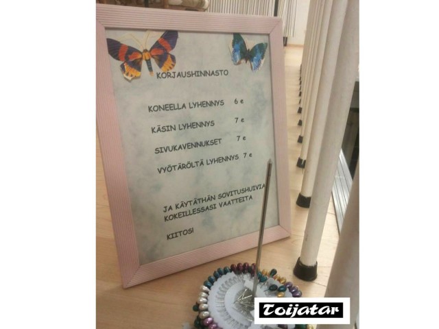 [quote]Naisten vaatetusta Toijalassa jo 55 vuotta. Valikoimissamme aikuiselle naiselle pääosin kotimaisia, suomalaiselle naiselle mitoitettuja vaatteita. Myös yksilöllisiä hauskoja erikoisuuksia Pariisista ja Milanosta. Kauttamme saat myös kattavat stailaus- sekä ompelupalvelut. Yksilöllistä…
