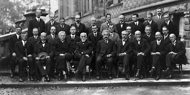 Solvay-konferenssit ovat tärkeitä modernin fysiikan kehittämisestä keskustelevia kansainvälisiä kokouksia. Lokakuussa 1927 järjestettiin viides ja kaikkein tunnetuin tähän astisista konferensseista. Tapaamisen aiheena olivat elektronit ja fotonit. Tuon ajan merkittävimmät fyysikot tapasivat keskustellakseen silloin vielä uudesta teoriasta, kvanttimekaniikasta. Näkyvimmät hahmot olivat Albert Einstein ja Niels Bohr. He ajautuivat sanaharkkaan, sillä suhteellisuusteoriastaan tunnettu Einstein ei pitänyt kvanttimekaniikasta, jonka yksi merkittävimmistä kehittäjistä oli juurikin Bohr.