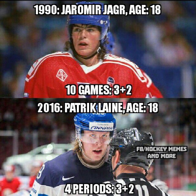 Saksa-matsissa Laine rikkoi Jaromir Jagrin ennätyksen eniten MM-kisoissa pisteitä tehneenä 18-vuotiaana. Jagr tarvitsi ennätykseensä 10 matsia, kun Laine oli samoissa jo neljän pelatun erän jälkeen. Tämä ei tarkoita, että Laineesta tulee Jagr, eikä sitä kukaan ole väittänytkään.