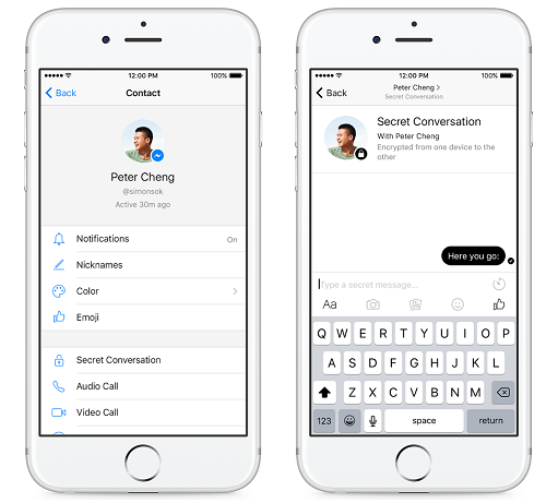 Facebookin Messenger pikaviestipalvelu ottaa Telegrammin ja Whatsappin tavoin käyttöönsä salatut keskustelut. Salatuissa keskusteluissa käytetään end-to-end-kryptausta, mikä näyttää viestisisällöt vain ainoastaan viestin lähettäneelle ja vastaanottavalle laitteelle. Salaus koskee kaikkia lähetettyjä viestejä ja kuvia.