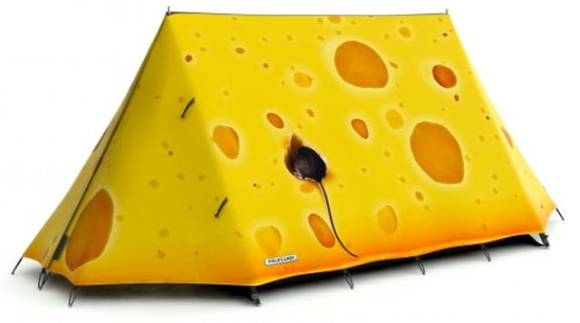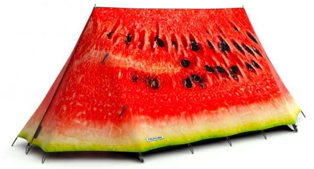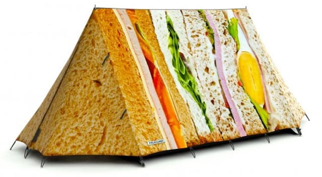 Unohda isältäsi peritty risainen teltta, nyt on aika korottaa panoksia design-teltalla. Brittiläinen yritys Field Candy valmistaa ja myy erilaisilla kuvilla koristeltuja telttoja. Mieti, kuinka hienolta jättimäinen kirja tai juusto näyttäisi tylsän telttameren joukossa. Ulkonäkö ei ole kuitenkaan kaikki kaikessa, sillä teltat on suunniteltu äärimmäisiä sääolosuhteita varten.