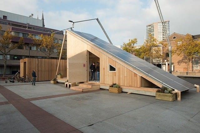 Tämä hassunnäköinen tötterö on eristetty, ekologinen, veden- ja tulenkestävä ja erittäin kustannustehokas rakennus, jonka on ajateltu tarjoavan vastaanottokeskusten ympäristöön keinon majoittaa tulijoita. Ne pitävät sisällään sängyt, lavuaarin, vessan, suihkun ja keittiönpöydän ja ne voidaan kytkeä helposti sähköverkkoon.
