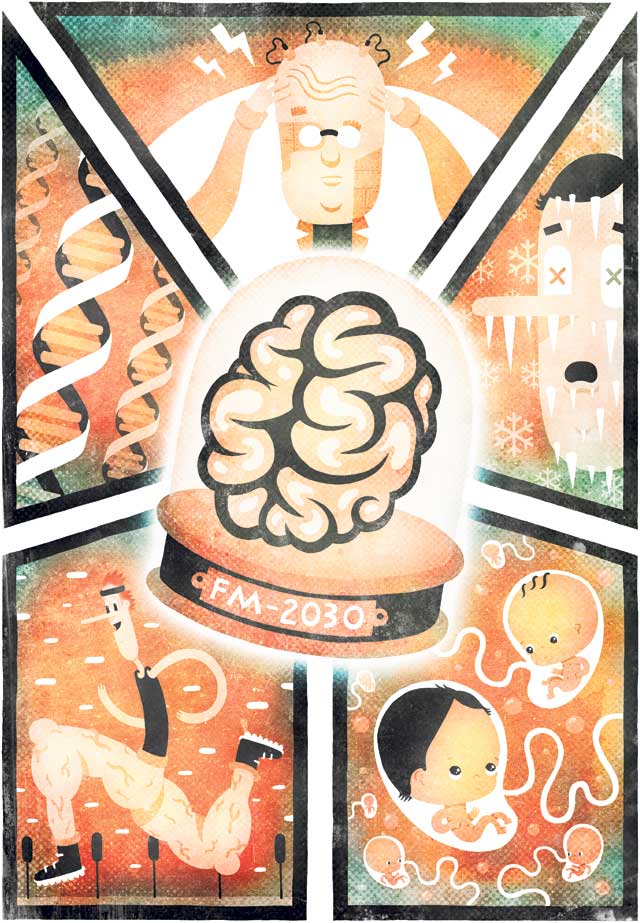 Lääketiede ja ravitsemustiede parantelevat ihmistä jatkuvasti ja monella tapaa. Vielä tärkeämmässä roolissa on geeniteknologia, joka muutaman kymmenen vuoden sisällä muuttaa lajiamme rajusti. Vanhemmat pääsevät räätälöimään lastensa perimää ja vähitellen ihmisistä tulee yhä terveempiä ja fiksumpia. Ihmisen keskimääräinen elinikä nousee entisestään.
