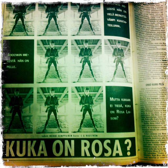 ”Rosa tuli Kulttuurivihkojen toimitukseen ja piti helvetin kovaa ääntä. Sillä oli joku virkattu pitkä kaapu, jossa oli toinen hiha ja toista hihaa ei ollut ja se tuli suoraan kirpputorilta. Sillä oli helvetinmoinen määrä erilaisia kattiloita, jotka kolisi ja se teki muhun lähtemättömän vaikutuksen”.