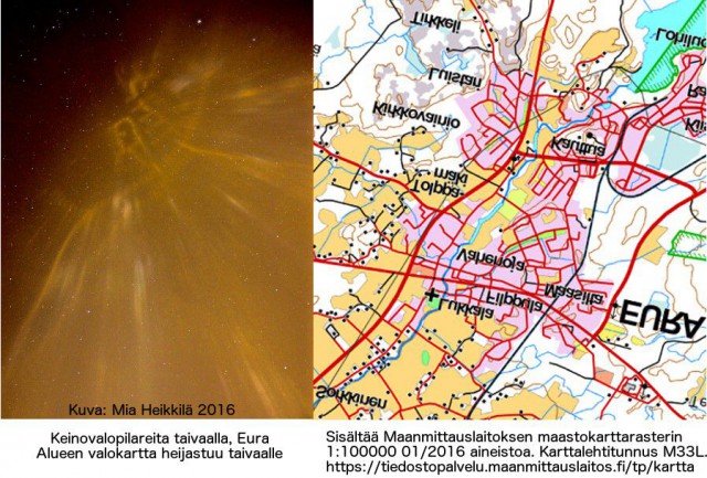 Kyseessä on katuvaloista syntyvä heijastuma, joka näkyi ilman jääkiteissä. Taivaanvahti-palvelun moderaattoreista Matias Takala vahvisti havainnon keinovalopilareiksi, kun taas Tero Sipinen epäili, että kuvassa näkyvässä keinovalopilarien kuviossa toistuu kuvauspaikan tieverkosto ja kehotti Heikkilää tutkimaan vastaako kartta hänen havaintoaan. Pian Anne Pöyhönen, ilmeisesti toinen euralainen, vahvisti kyseessä olevan Euran.