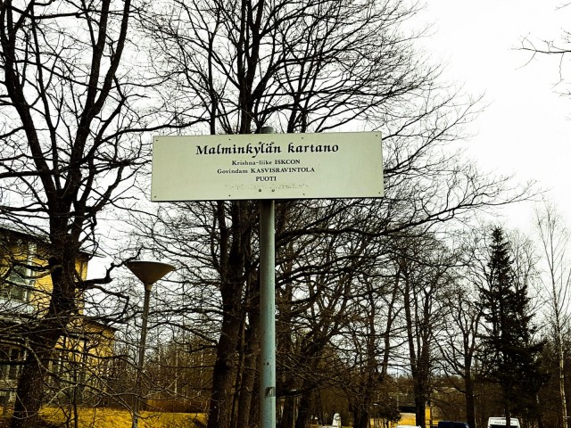 Kilometrin päässä Malmin keskustan aina eloisasta meiningistä seisoo Hare Krishnojen temppeli ja tänään on juhlat. Kello on neljä sunnuntai-iltapäivänä ja puiseen kartanoon lappaa sisään länsimaalaisen näköistä sakkia, joista suurin osa on lyhyttukkaisia miehiä. Muutamaa minuuttia myöhemmin myös intialainen perhe kiipeää portaita pienten lastensa kanssa.