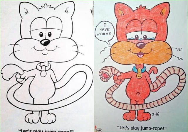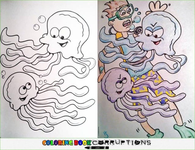 Lasten mielikuvitus laukkaa tunnetusti vilkkaasti, jonka vuoksi piirrokset ja leikit vaihtelevat laidasta laitaan. Myös aikuisten sisällä asustaa luova taapero, jonka huumori on hieman muuttunut vuosien varrella pimeämpään suuntaan. Seuraavat 14 kuvaa ovat lopputuloksia, joissa aikuisille on annettu tilaisuus värittää yksi kuva lasten värityskirjasta.