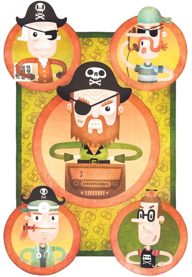 Luulitko, että piratismi on internetin myötä syntynyt ilmiö? Ei suinkaan. Piraatit kamppailivat tekijänoikeuksia vastaan jo 1600-luvulla. Keitä olivat maailman ensimmäiset piraatit? Miten radiopiraatit hyödynsivät viskipulloja? Kuinka puhelinpiraattien salaseuraan pääsi jäseneksi? Miksi kommandot pahoinpitelivät partituuripiraatteja? Juha Matias Lehtonen toimii matkanjohtajananne läpi länsimaisen piratismin historian.
