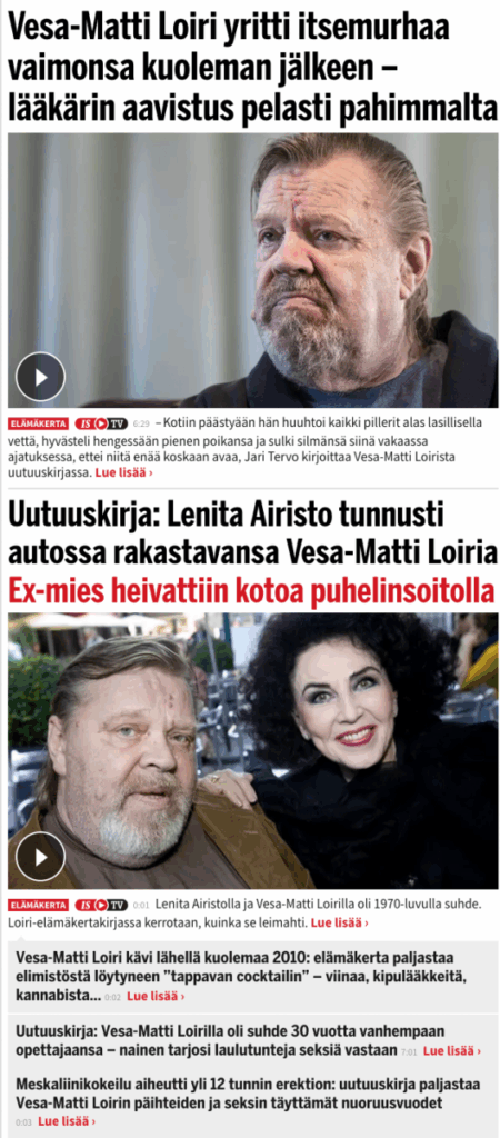 Uutuuskirjan antiin on helppo tutustua edes lukematta kirjaa. Kymmenet Loiri-jutut poimivat kätevästi kirjan kohokohdat lukuisten eri medioiden sivuille ja tämäkin juttu on osaltaan todistus siitä jalustasta, jolla mestari-Loiri maassamme seisoo. Nyt teidän ei tarvitse edes lukea kirjasta kirjoitettuja lehtijuttuja, sillä alle poimimistamme otsikoistakin selviää jo pääkohdat.