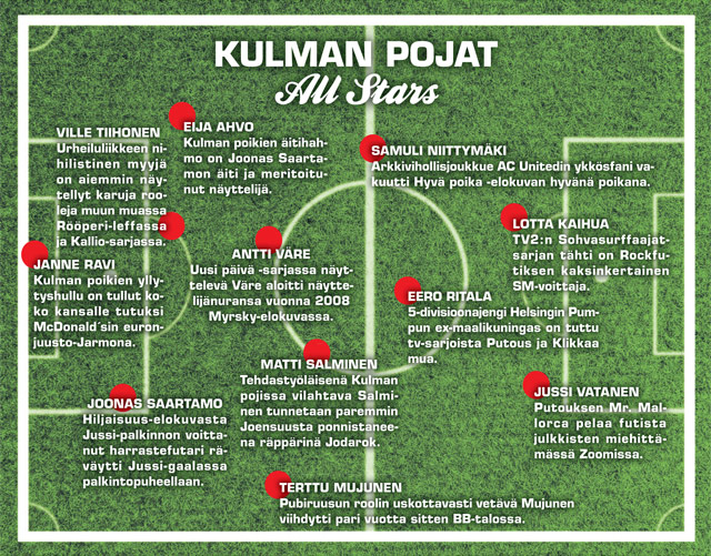 Kulman Pallo on rehellinen altavastaajajengi, jonka arkkivihollinen on hienohelmajoukkue AC United. Kulman poikien viha pahinta vastustajaa kohtaan kiteytyy kaupunkiin palaavaan entiseen maajoukkuefutaajaan Tuukka Tiensuuhun (Jussi Vatanen).