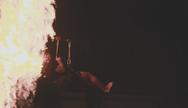 “Mennään tonne ylös. Kytketään sut vaijeriin kiinni. Sit lähdet liukumaan, ensin vesimeren, sitten tulimeren läpi. Kun kohtaat tulen, laita suu kiinni, älä ota happea, koska on ikävä jos imet kaasut keuhkoihin. Ja mikäli sattuu jotain, esimerkiksi vesi ei lähde päälle, on pieni riski, että sun kehoon tulee tulta ja sytyt palamaan. Siellä on kaveri loppupäässä sammuttamassa sut.” (Markku)