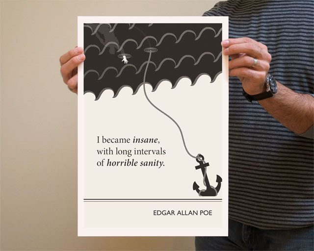 New Yorkissa asuva graafinen suunnittelija Evan Robertson on luonut tyylikkään yksinkertaisia mustavalkojulisteita, joissa kuuluisien kirjailijoiden ajatusmaailma on tiivistetty oivaltaviin lauseisiin ja herätetty henkiin kekseliäillä kuvituksilla.