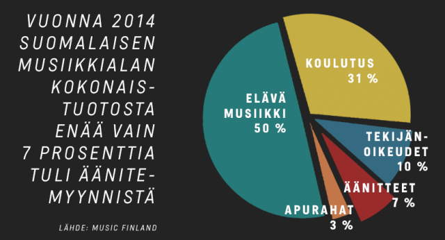 Tähän juttuun on poimittu kiinnostavia yksityiskohtia tuoreesta musiikkibarometrista. Alta löytyvä kuva on jo vuotta aiemmin julkaistusta, alan tunnuslukuja esittelevästä Musiikkialan talous Suomessa -tutkimuksesta.