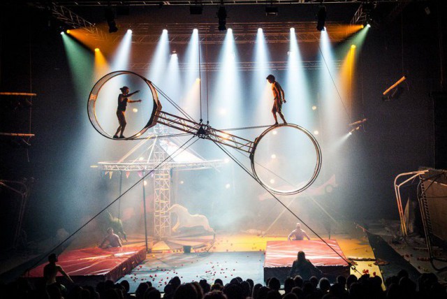 Race Horse Companyn Super Sunday nähtävillä 21. huhtikuuta saakka CircusFest 2016 Lontoon Camden Townin Roundhousessa.
